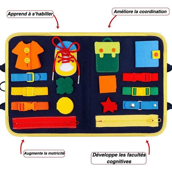 •Stimulation sensorielle et cognitive: Les formes, couleurs et textures variées éveillent les sens de l’enfant, tout en renforçant sa mémoire, sa logique et sa capacité de concentration.